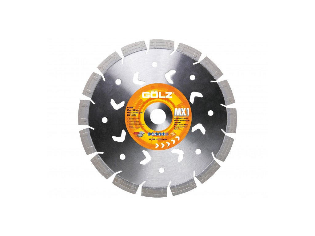 GÖLZ MX1 je výkonný diamantový kotouč s 3stupňovým segmentem (14 mm) navržený pro rychlé a stabilní řezy v širokém spektru materiálů – od granitu a klinkeru až po beton a silně vyztužený železobeton. Perforované jádro zlepšuje chlazení a snižuje potřebu chladicích přestávek, laserově gravírovaná směrová šipka pak usnadňuje správnou montáž na úhlovou brusku.