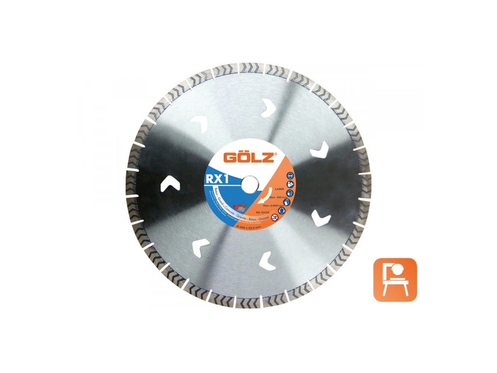 GÖLZ RX1 je univerzální, laserem svařovaný diamantový kotouč pro rozbrušovací pily. Zvládá široké spektrum materiálů – od obecných stavebních směsí přes beton a pohledový beton až po cihly, tvrdý kámen a žulu. Robustní segmenty s výškou 16 mm nabízí jistý záběr i dobrou životnost, takže RX1 je spolehlivou volbou pro každodenní práci na stavbě.
