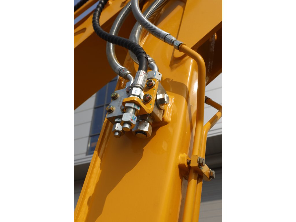 O pohon hydrauliky se stará axiální pístové čerpadlo Hengli HP5V45 s průtokem až 96,8 litrů za minutu, které poskytuje plynulý a přesný výkon pro všechny pracovní úkony. Rýpací síla podle normy ISO6015 dosahuje 30,4 kN na lžíci a 18,2 kN na rameni, což zaručuje rychlé a efektivní kopání i v těžkých zeminách.