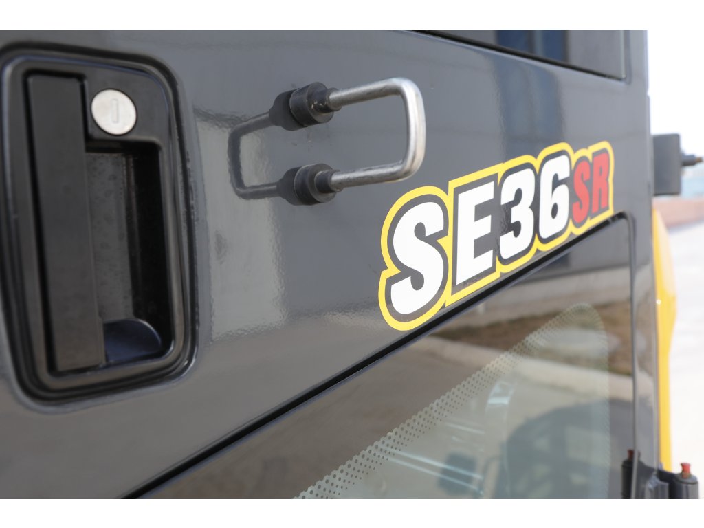Díky kompaktním rozměrům (šířka podvozku 1 880 mm, výška 2 400 mm) a šířce pásů 300 mm nabízí SE36SR vynikající stabilitu i při práci na měkkém podkladu. Nízký tlak na půdu 32 kPa umožňuje šetrný pohyb po trávě, zámkové dlažbě či jiných citlivých površích.
