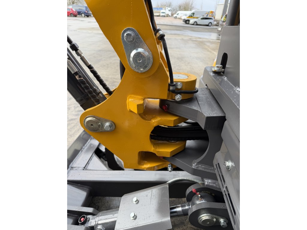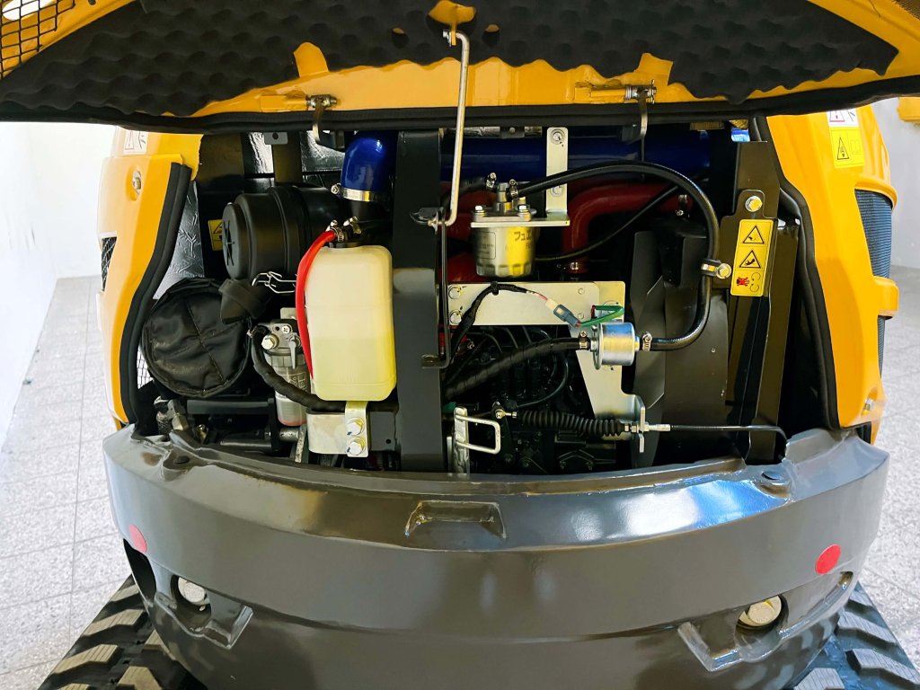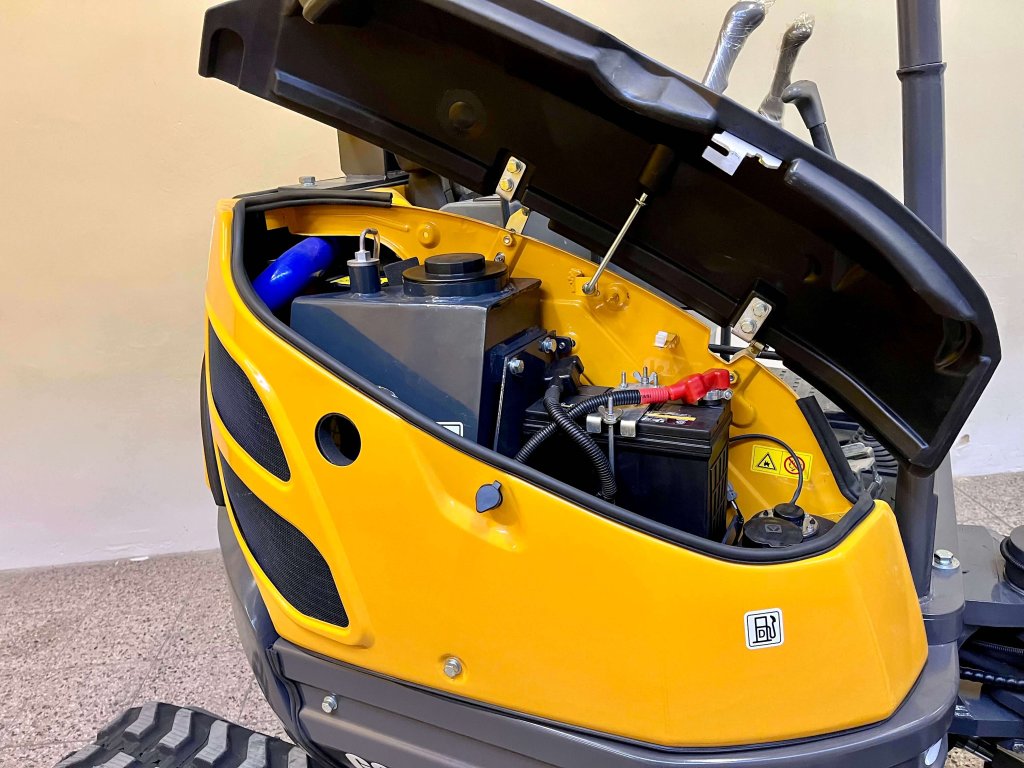 Robustní konstrukce: Minibagr je postaven na pevném rámu s odolnými materiály, což zajišťuje dlouhou životnost stroje při zachování stability a spolehlivosti.