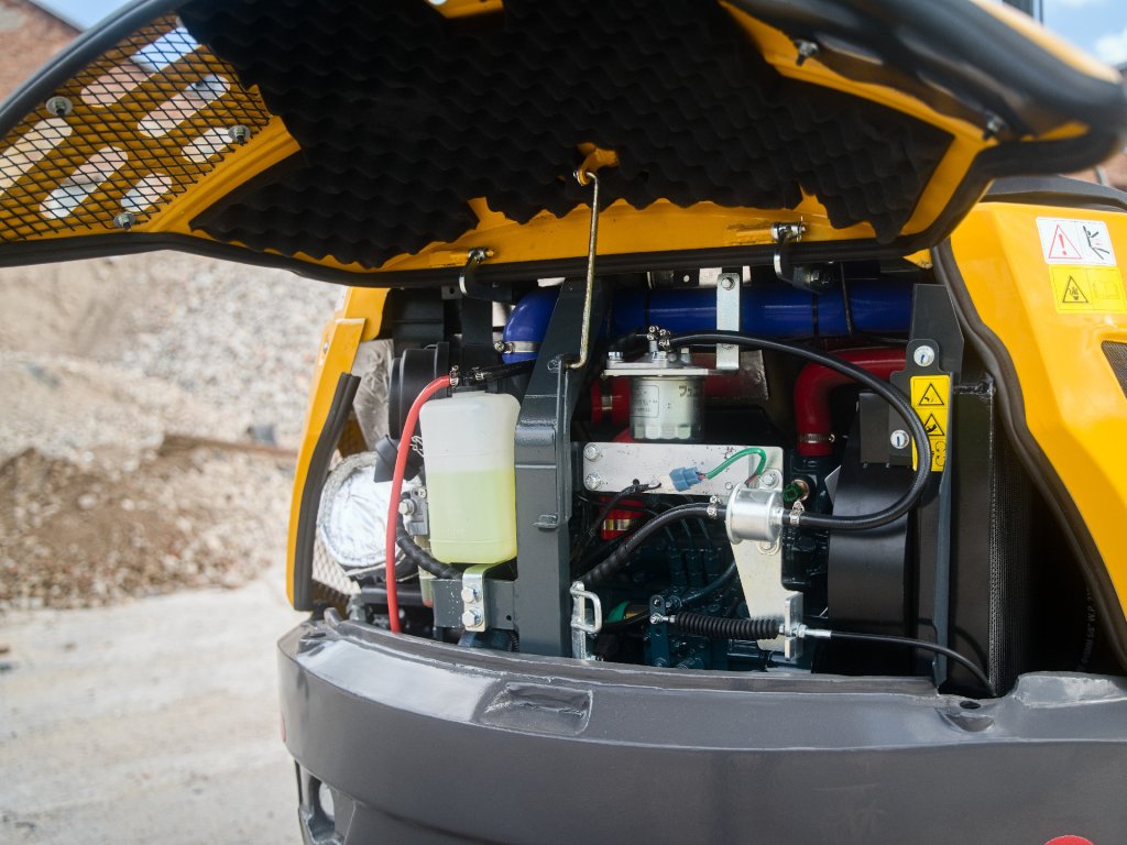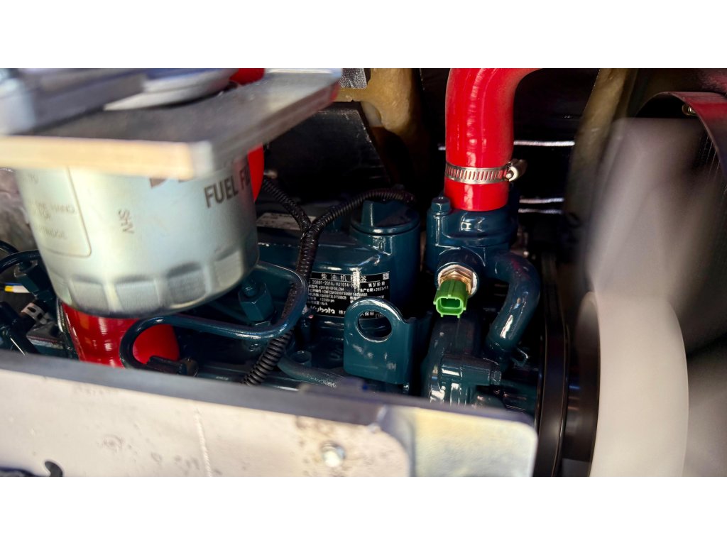 Motor KUBOTA D1105: Spolehlivý tříválcový japonský motor KUBOTA D1105 o výkonu 19HP poskytuje dostatečný výkon pro efektivní provedení různorodých stavebních úkolů.