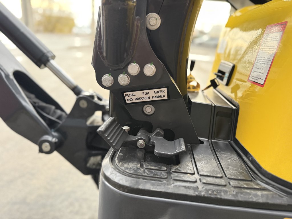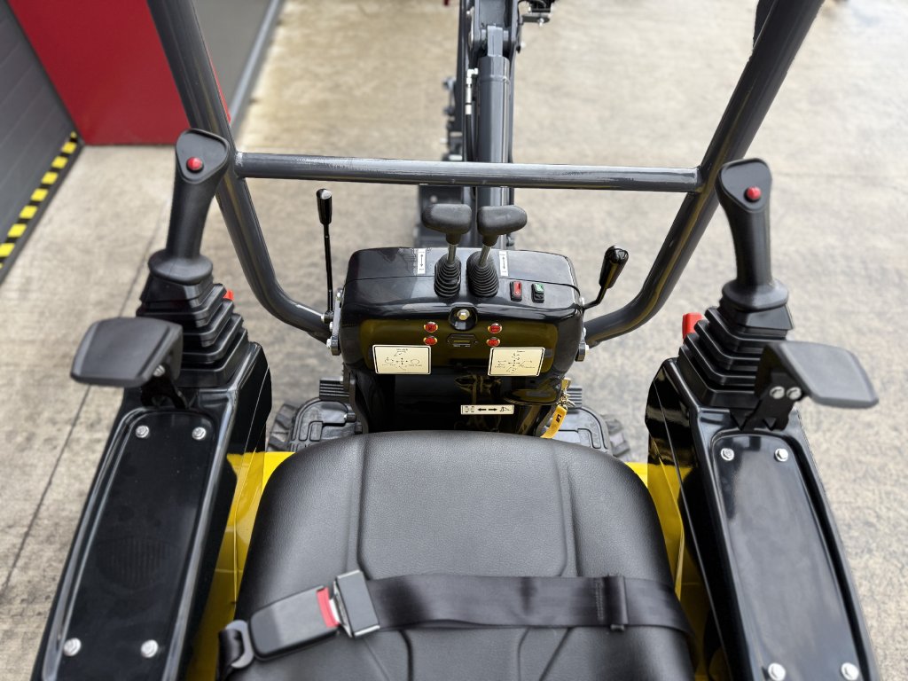 Řízení stroje je intuitivní díky joystickům, které lze vyklopit nahoru – čímž zároveň slouží jako bezpečnostní zámek hydrauliky.