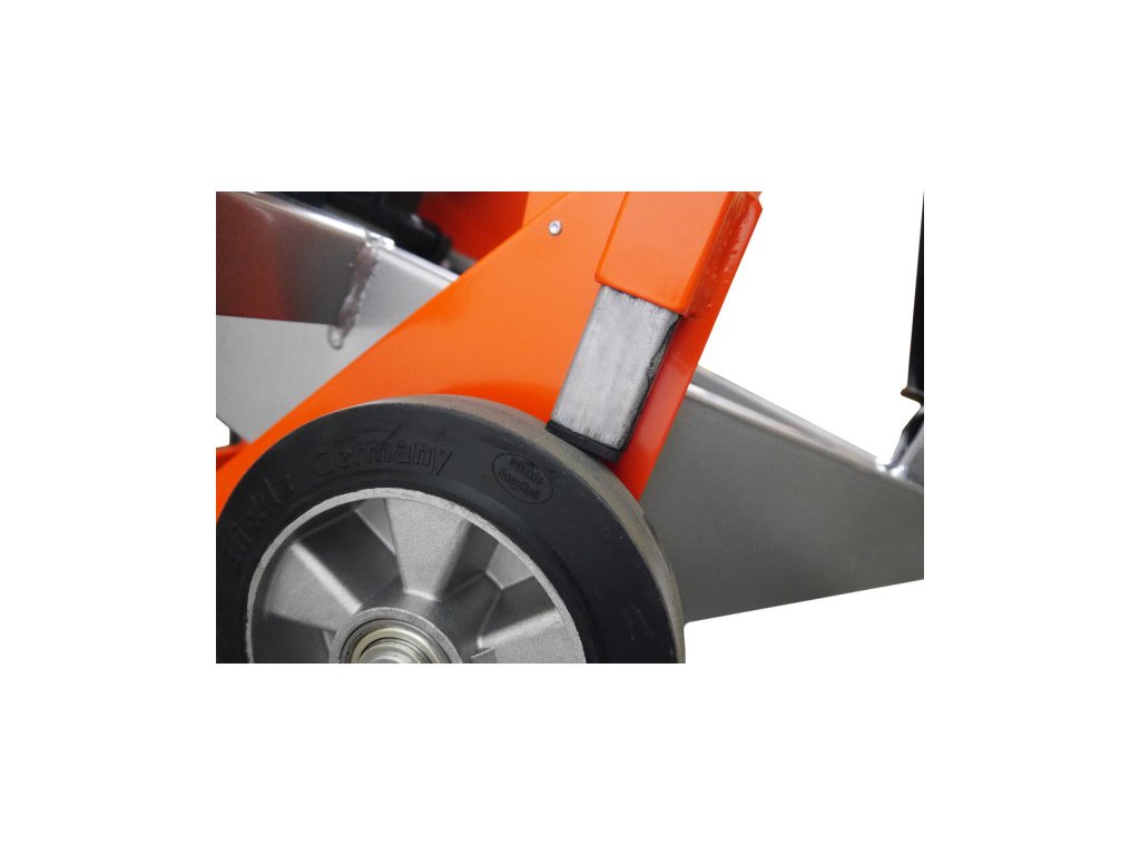 Elektrická pojízdná řezačka GÖLZ FS30E kombinuje vysoký výkon s mimořádně praktickou konstrukcí – šasi je demontovatelné do 3 částí pro snadný transport po schodišti či na vyšší podlaží. Stroj umožňuje plynulé nastavení hloubky řezu, má rychloupínací desku motoru pro rychlé sejmutí E-motoru a podporuje pravé i levé uložení kotouče. Dělitelný kryt lze vyklopit pro řezání těsně u stěny. Voda se přivádí externě přes GK rychlospojku. Samozřejmostí je nouzové STOP a parkovací brzda pro bezpečný provoz.