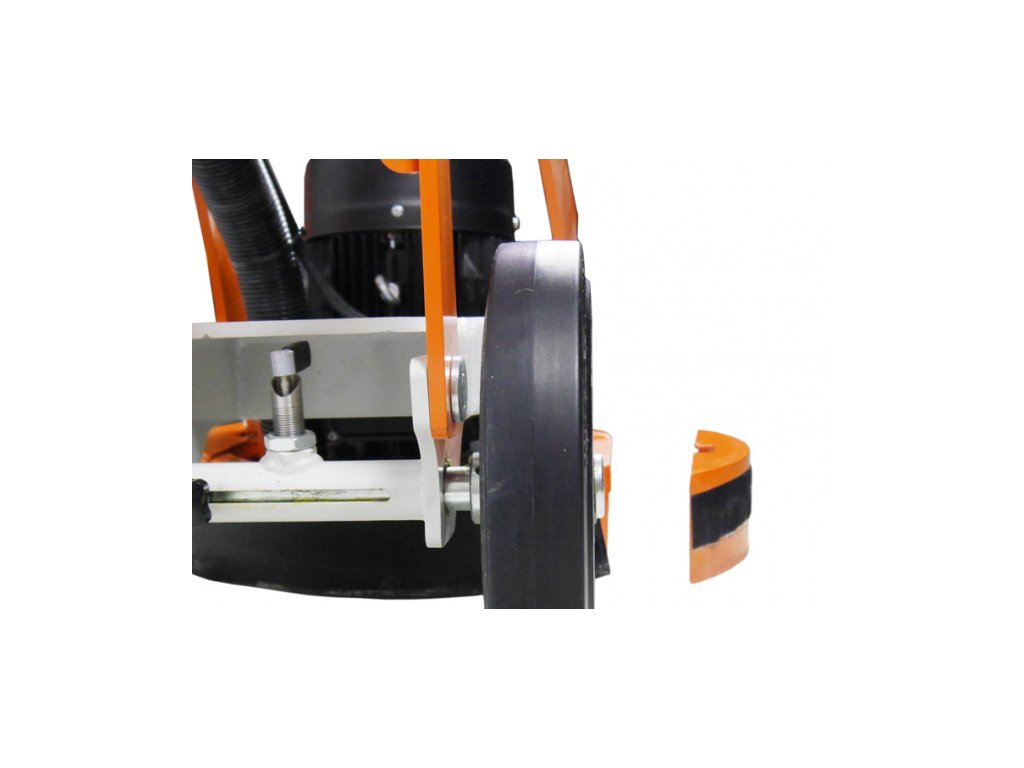 SM400S je robustní jednokotoučová bruska pro profesionální přípravu a renovaci povrchů. Nabízí pracovní průměr Ø 400 mm (osazení 8 nástroji), suché i mokré broušení a nastavitelnou rukojeť pro pohodlné vedení stroje. Jednofázový průmyslový pohon 400 V / 2 200 W pracuje na 950 min⁻¹ a díky sklopnému a dělitelnému rámu se stroj snadno přenáší i do vyšších pater. Pro mokrý provoz je k dispozici 30l nádrž (příslušenství).