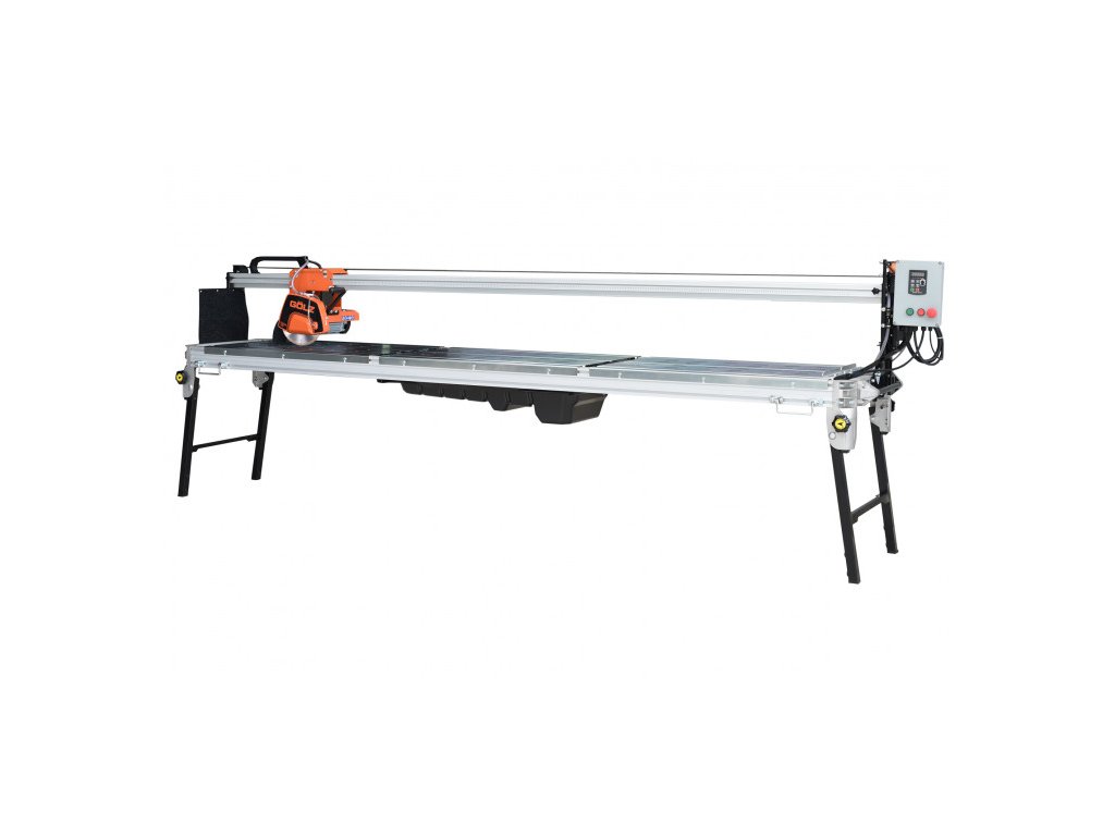 GÖLZ TS250A-330 je výkonný a robustní mostový model (bridge saw) pro mokré řezání velkoformátových keramických desek a obkladových panelů. Disponuje motorem 1,3 kW, otáčkami 2 800 min⁻¹, krytím IP54 a hlavu s možností naklopení pro Jolly řez až 45°. Je navržen pro řezání delších kusů – maximální délka řezu dosahuje 3 300 mm, což ho řadí mezi největší modely v portfoliu GÖLZ. Stroje lze vybavit až osmi bočními podpěrami pro stabilní vedení materiálu. Vana i pracovní stůl jsou odnímatelné pro snadné čištění, čerpadlo má rychloupínací spojku pro jednoduchou výměnu, a konstrukce zahrnuje skládací nohy a transportní kolečka. :contentReference[oaicite:0]{index=0}